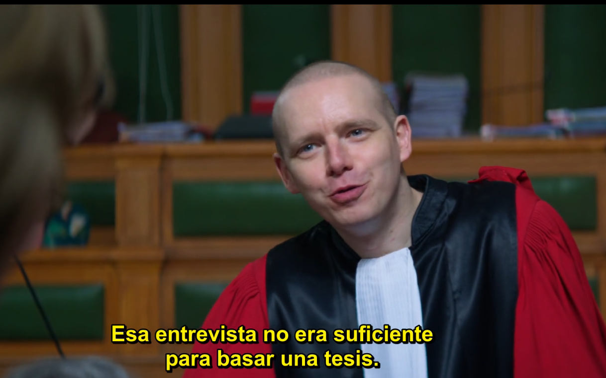 REFLEXIÓN. Ya en la parte final del juicio se debate cómo la inspiración de la vida real de Sandra, protagonista, acusada y escritora, para su proceso creativo es un vistazo a sus deseos insanos, a su intención de librarse de su esposo. Del plagio que ella hizo a la obra de su esposo y Sandra alega que fue inspiración. En una escena, Sandra le dice a su hijo que ella no es un monstruo, ¿debe Daniel créele?, ¿De qué modo podemos creerlo nosotros?, que estamos al otro lado de la pantalla.
