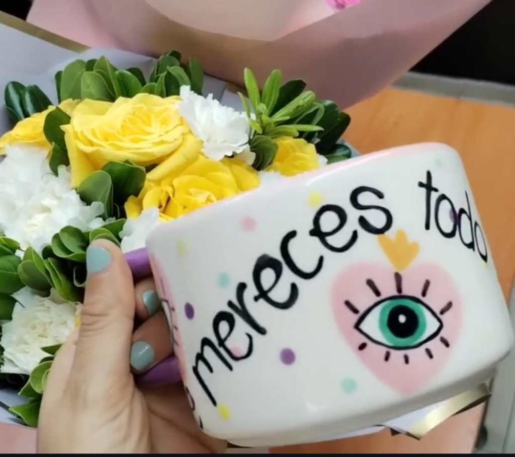 Sin embargo, eso cambió hace unos días que fue mi cumpleaños. Alguien me regaló una taza. Me extrañó un poco porque en ese sitio, solo había personas que me conocían, aunque creo que el tema de las tazas puede que no se lo haya contado a nadie o a muy pocas personas. Tampoco sabía de quién era el detalle porque no tenía nombre. En fin, vi que era una taza y al irle quitando el papel, me di cuenta que no era “una taza”, sino “La taza”. Tenía colores hermosos o al menos que a mi me gustan y me transmiten paz, pero sobre todo tenía esta frase: “Te mereces todo lo bonito”.
